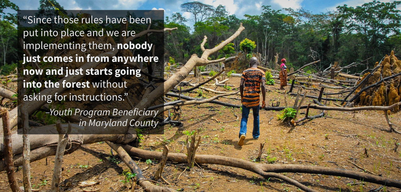 Households in CLPP communities are also significantly more likely to report that their community has written land rules as a result of the bylaws drafting process, which about 90% of CLPP communities had started at the time of midline data collection. Households in CLPP communities also reported higher satisfaction with land rules. A group of youth in one CLPP community in Maryland explained new rules and regulations surrounding forest access in their town: